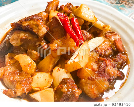 中国家庭料理・紅焼軟骨茭白(豚ナンコツとマコモダケの醬油煮込み))