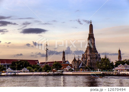 ワット・アルンの夕景、暁の寺(タイ、バンコク)