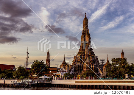 夕方のワット・アルン、暁の寺(タイ、バンコク)