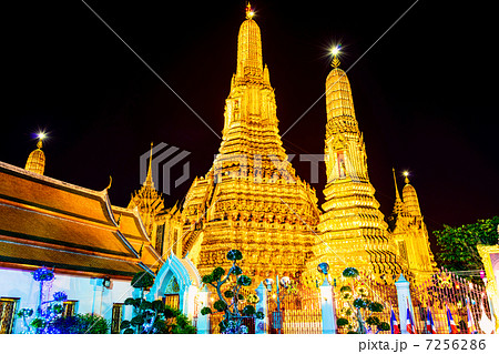 ワット・アルンの夜景、暁の寺(タイ、バンコク)