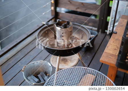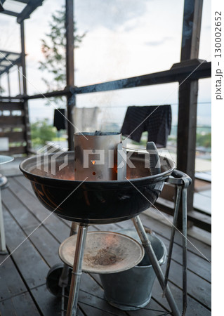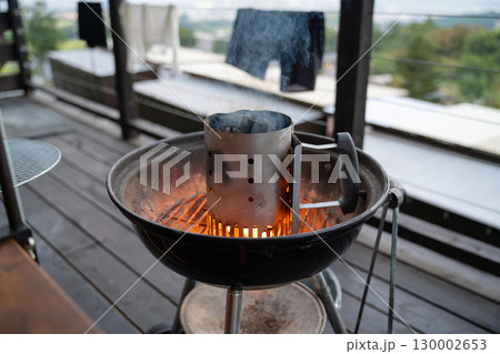 There is BBQ chimney starter in use right now to get charcoal ready for grill to start glowing