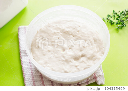 Sourdough Bread in Proofing basket, bannetons baskets for retarding raw dough before baking.
