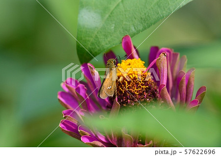 セセリチョウと百日草(ジニア)