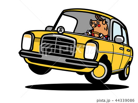 2019年年賀状素材 亥とレトロな自動車
