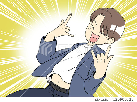 ノリノリでポーズを決める男性 集中線 上半身