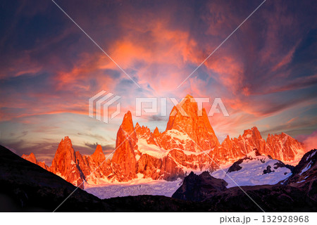 パタゴニア地方のフィッツ・ロイの朝焼け