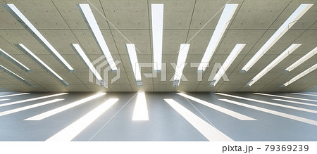鮮豔細緻的全景景觀圖:水泥幾何建築(3D CG 渲染數位插圖)