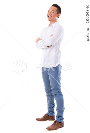 A Confident Young Man Standing with Arms Crossed, Posed Against a White Background