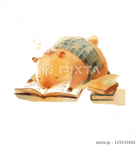 Cute animal reading while resting on a book in a cozy setting with additional books nearby