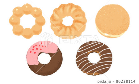 手描き水彩の可愛くて美味しそうなドーナツイラストセット