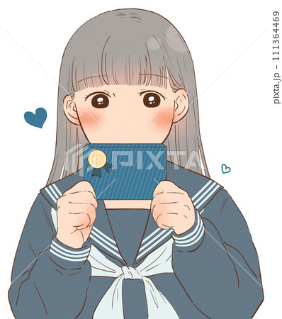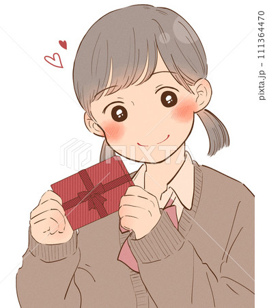 後ろ手にチョコレートを持つレトロポップな女子生徒