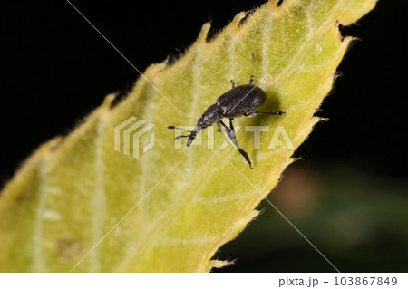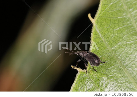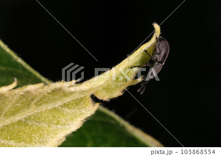 生き物 昆虫 クロケシツブチョッキリ、ゾウムシ上科オトシブミ科チョッキリゾウムシ亜科の甲虫