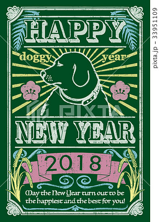 2018年賀状テンプレート_チョークアート_英語添え書き