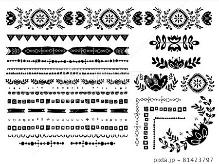 レトロポップ 線のベクター素材セット 花柄 チロリアンテープ チューリップ 北欧 欧風