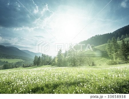 Picturesque meadow in the Italian Dolomites. Trentino Alto Adige