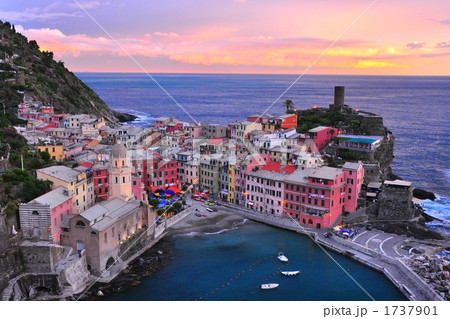 イタリア チンクエテッレ ヴェルナッツァの夕景