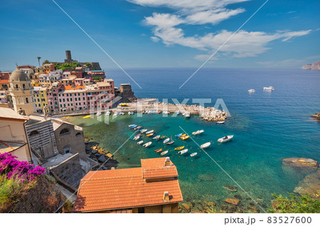 Vernazza Italy, city skyline at Cinque Terre of Vernazza village and Mediterranean sea