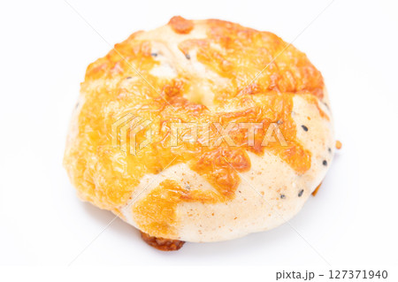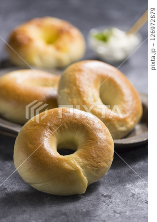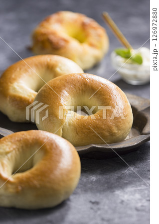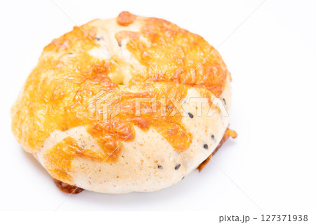 手描き水彩の焼き立てチーズベーグルのイラスト