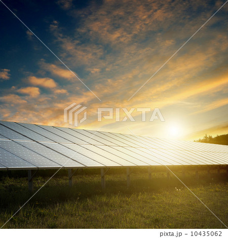 solar panels under sky on sunset