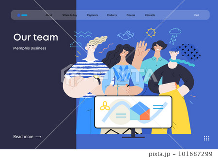 Memphis business illustration - our team, header. Flat style modern outlined vector concept illustration. Group of people, creaw, standing together. Corporate teamwork business metaphor.