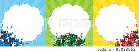応援する大勢の人々(赤・青・緑) 対決 背景・フレーム素材