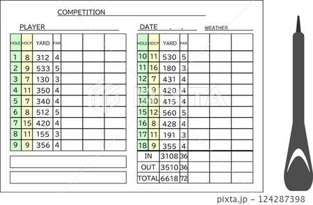 シンプルなゴルフのスコアカードと鉛筆のイメージ素材