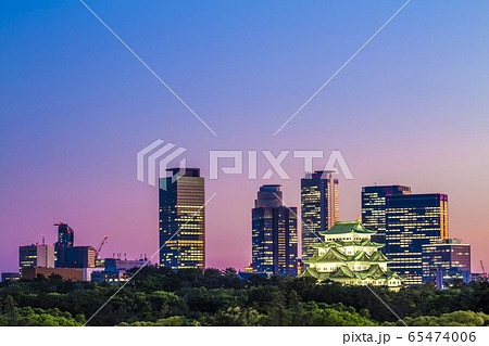 大阪城公園から見る大阪ビジネスパーク(OBP)の綺麗な夕景
