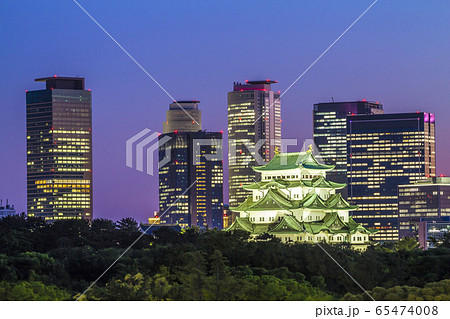 名古屋都市風景 名古屋駅前ロータリー 大名古屋ビルヂング JRセントラルタワーズ 夜景