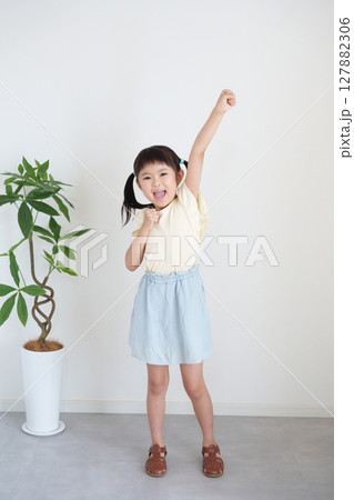 ガッツポーズする子供の全身