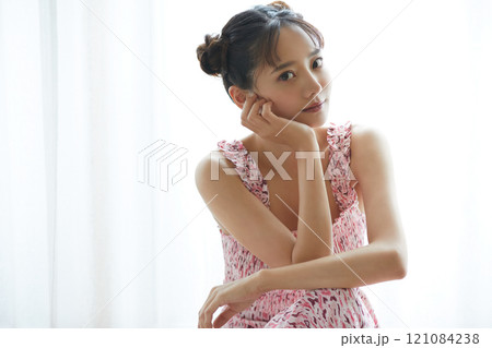若い女性のカジュアルでガーリーなポートレート