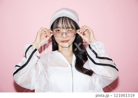 ストリート系のファッションをした若い女性のカジュアルなポートレート