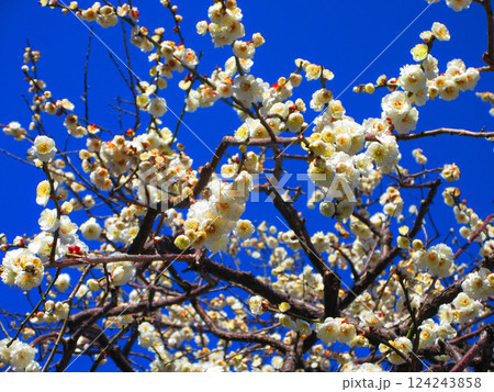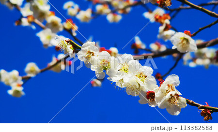 2024年大宮第二公園梅まつりの梅の花と青空の風景