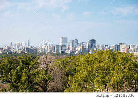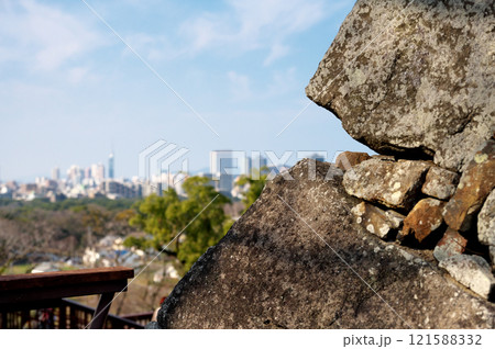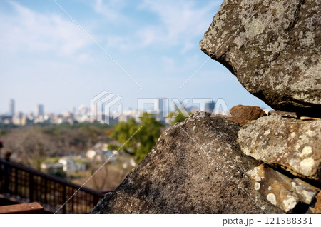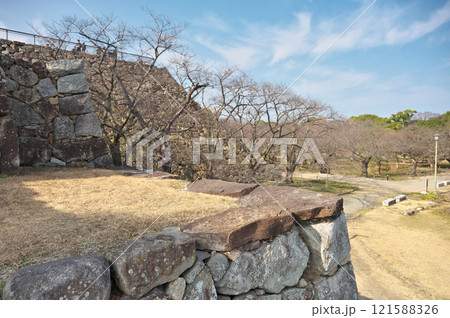 [九州・福岡] 秋に乾いたツクシオオガヤツリの大濠の堀に囲まれた福岡城の築城。