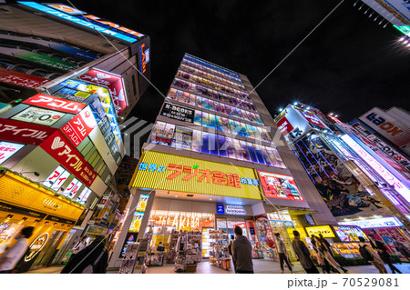 日本の東京都市景観 東京・秋葉原。閉店した秋葉原駅前の家電量販店(ツクモ秋葉原駅前店)