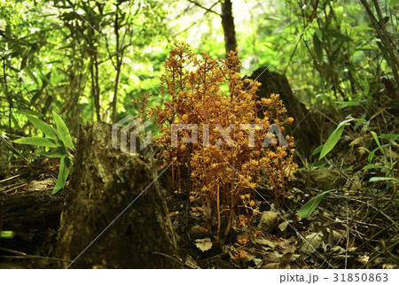 武庫川峡谷で見たたくさんの株が並んでいる姿が綺麗な腐食植物のツチアケビ