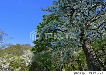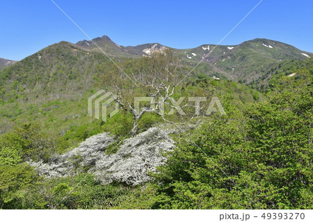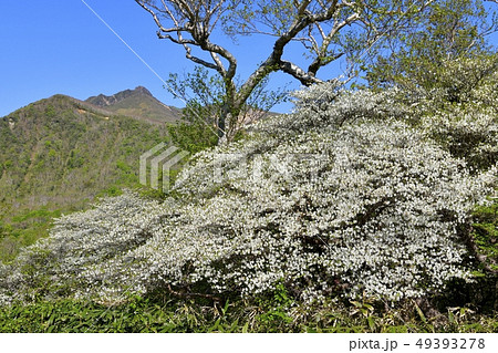 那須連峰中ノ大倉尾根登山道の花咲くシロヤシオの木