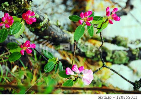 中国 雲南省 シャングリラ市 壁塔海 湖畔に咲くシャクナゲ