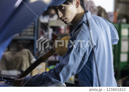 整備工場で働く自動車整備士・検査員の男性スタッフ