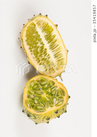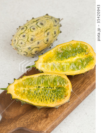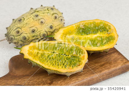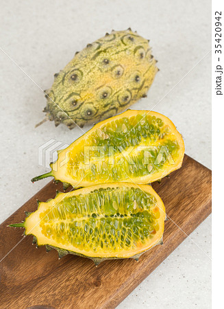 キワーノ 不気味な果物のイメージ写真 赤背景