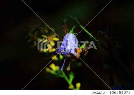 雨に濡れてしずくたっぷりのツリガネニンジン