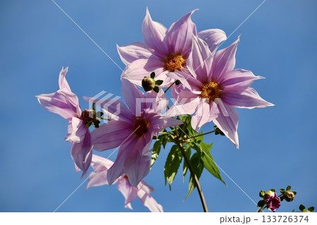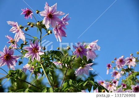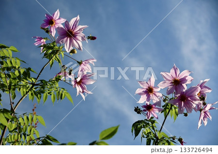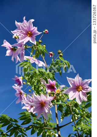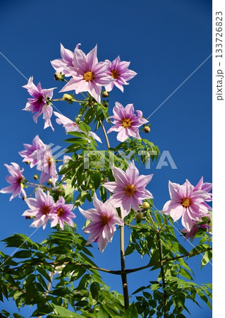 皇帝ダリア(キダチダリア)の花と青空の風景