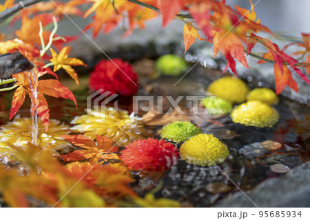 秋の熊野大社 鮮やかな手水舎 山形県南陽市