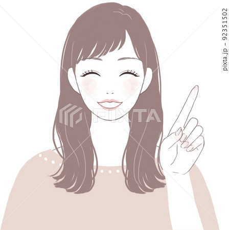 目を輝かせるロングヘアの可愛い女性 指差しver