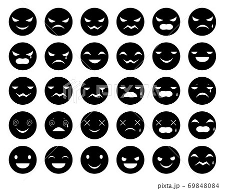 怖い表情や笑い、焦りなどの表情の黒い画面のスマホ素材のセット