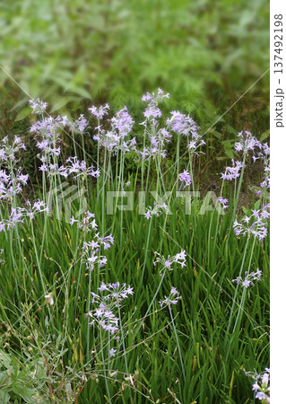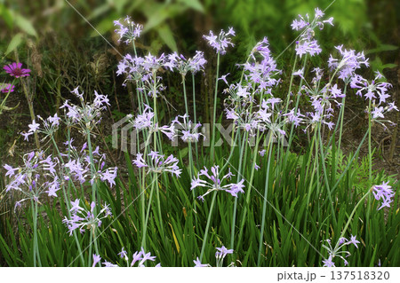 夏のガーデンで美しく咲くツルバギア ヴィオラセアの花