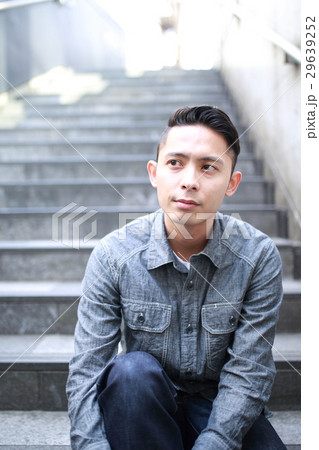 男性 カジュアル (人物 コピースペース ハーフ フィリピン人 日本人 スナップ ポートレート)
