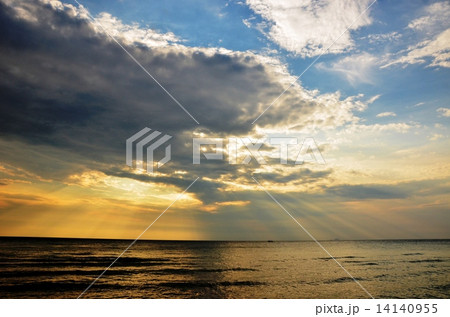 マレーシア:ティオマン島の海に沈む夕日と穏やかな波