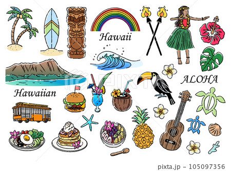 Hawaiian symbols set, summer vacation, summertime, beach holidays vector Illustration