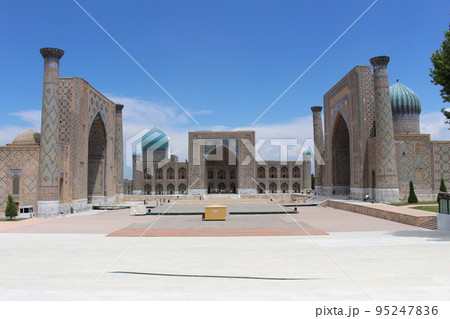 サマルカンドの名所 レギスタン広場 ウズベキスタン