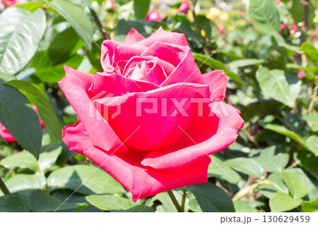 濃いピンクの大輪の花、強い香りの薔薇「王妃アントワネット」